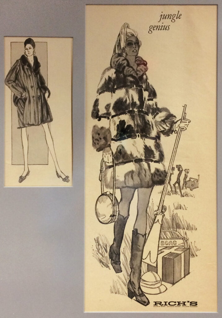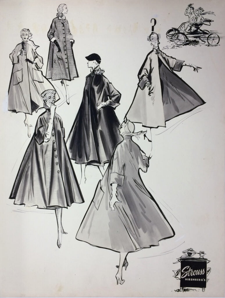 Norma Wagner Uray: Fashion Illustrations features illustrations created by Norma Wagner Uray for retail advertising from the 1950’s to 1980’s. During these decades, it was common for fashion illustrations to be included in advertising to help persuade shoppers to purchase merchandise at regional department stores. Illustrations attracted the eye and showcased goods. Ads portrayed a consistent image of the store, which mirrored the implied personality of their customers.