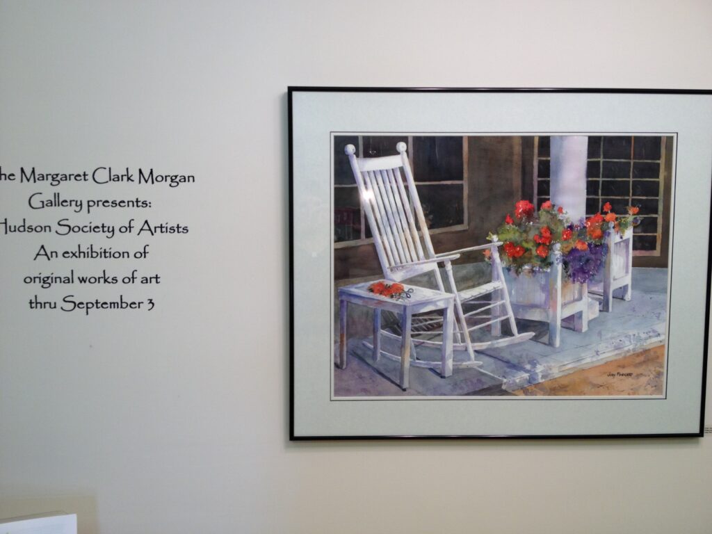 Her work has been included in many juried shows, including Ohio Watercolor Exhibit, Canton Art Museum, WATERCOLOR WEST XIV, Ca., Wasmer Gallery – Ursuline College, Kaleidoscope 2005-2007-2011, and Summit Artspace Exhibit 2012. She is past President of Hudson Society of Artists.