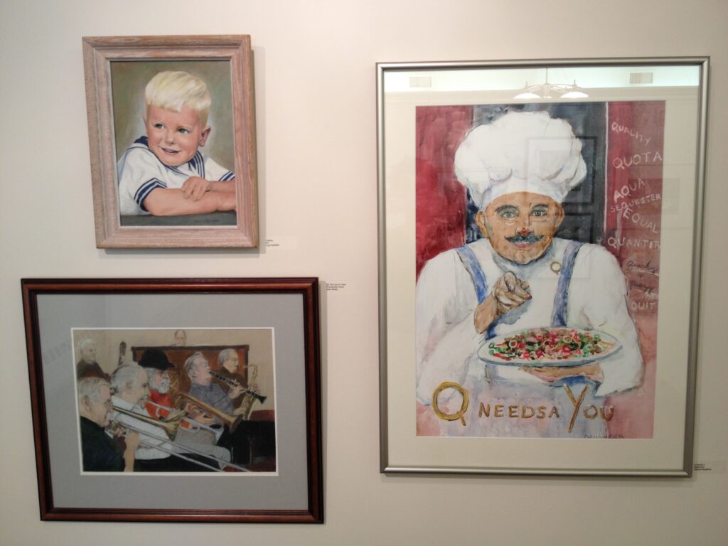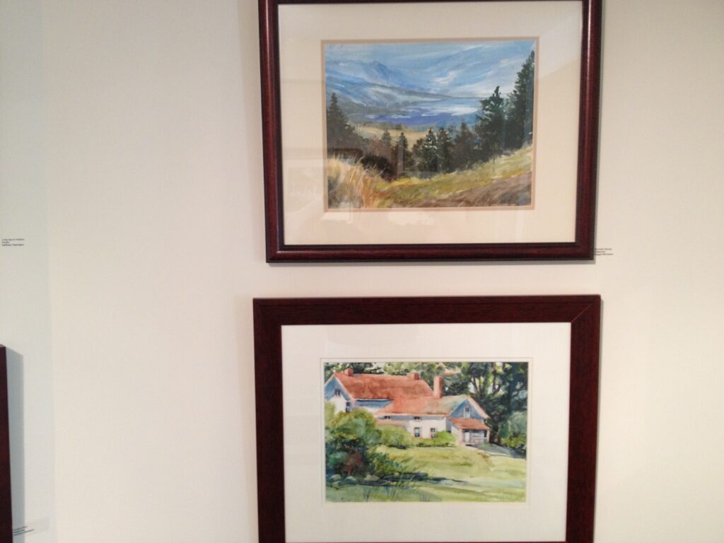 She has shown in numerous group and one-person art exhibits and has won many awards. Her work is represented in private collections locally and throughout the United States and Europe, as well as in the book, Splash 8: Watercolor Discoveries, published by North Light Books.