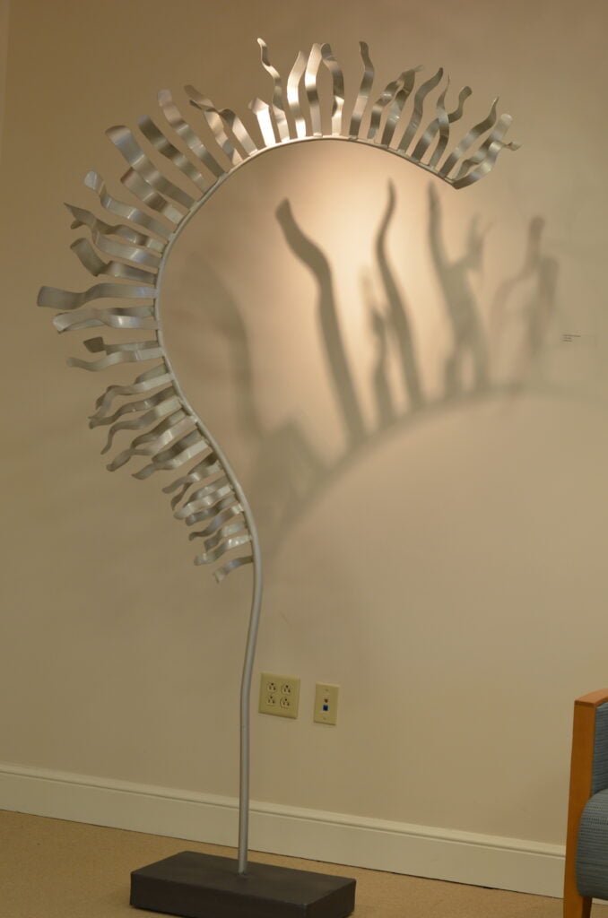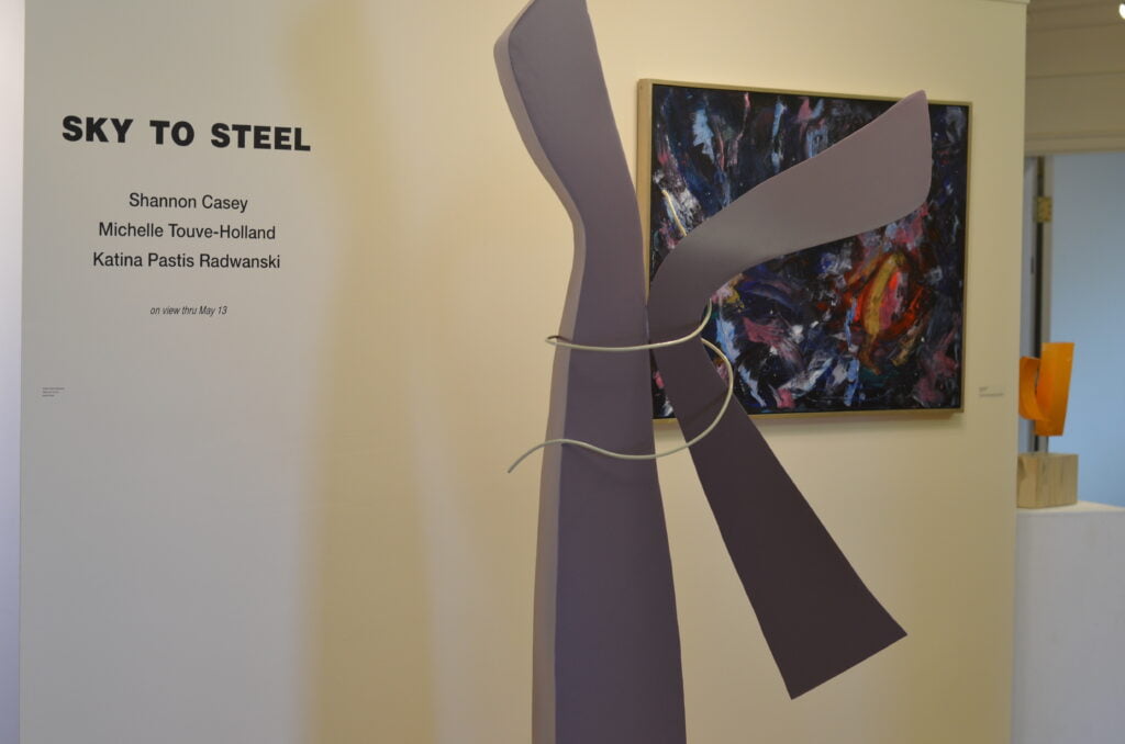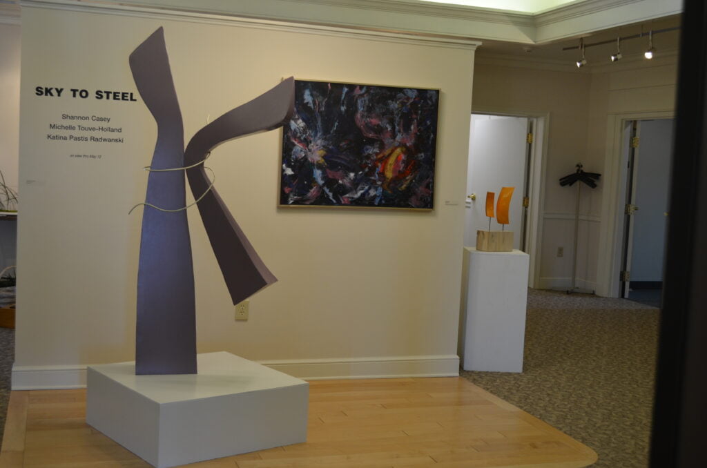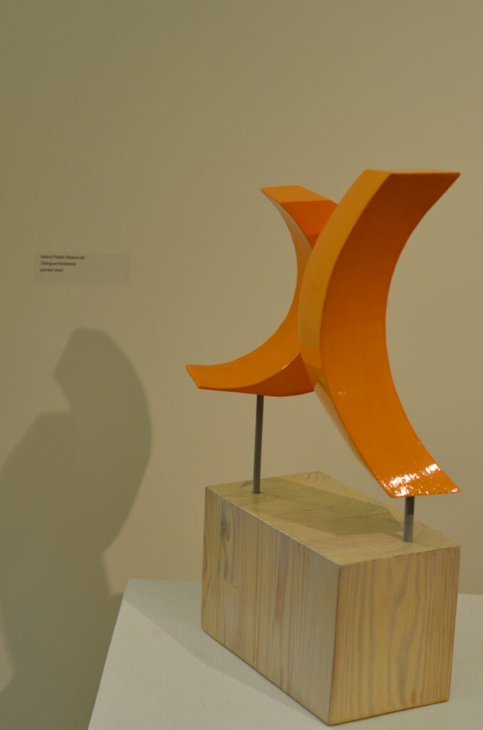 Katina Pastis Radwanski works comfortably as both painter and sculptor. Her distinctive acrylic paintings and metal sculpture invite interpretation according to each viewers own life experience. Employing a meditative sketching technique —she scribbles in her sketchbook until an image appears which she feels has both significant meaning and visual strength. Most often the sketches are abstract in nature though occasionally more representational images appear on the page. The paintings and sculptures resulting from these sketches are often interpretations of contemporary political climates. Some are observations of human interactions, and others of her own personal life experience.