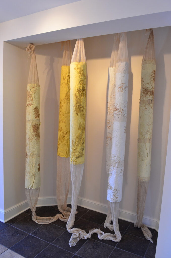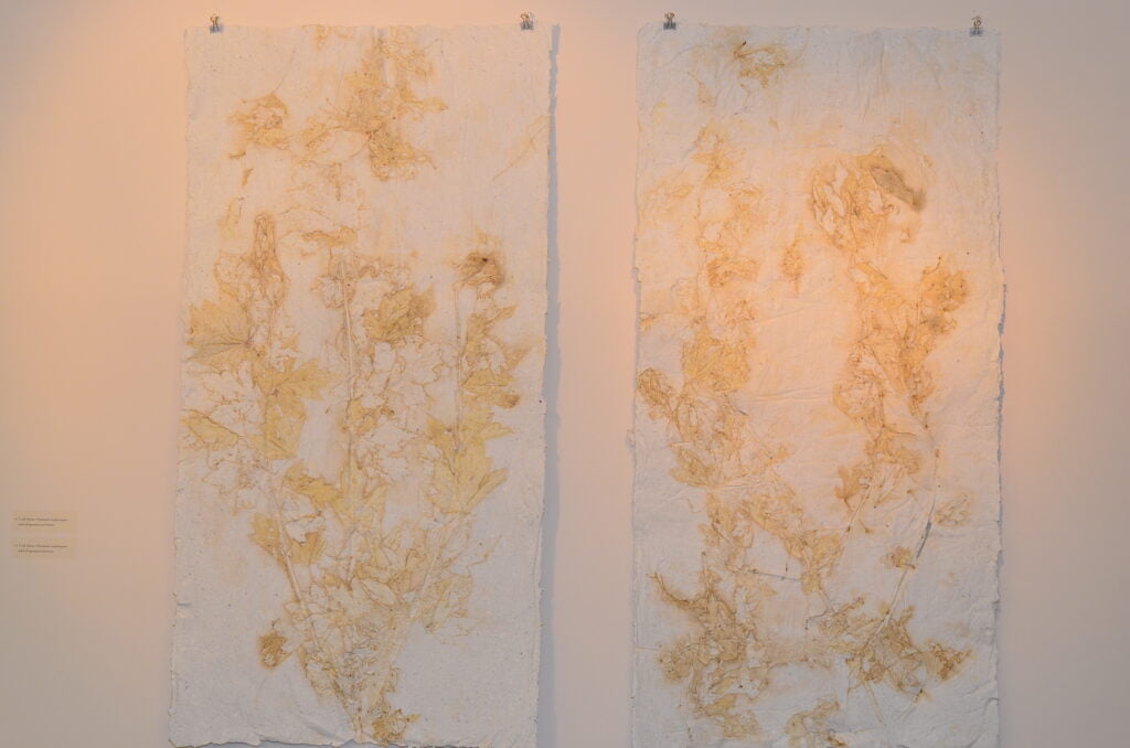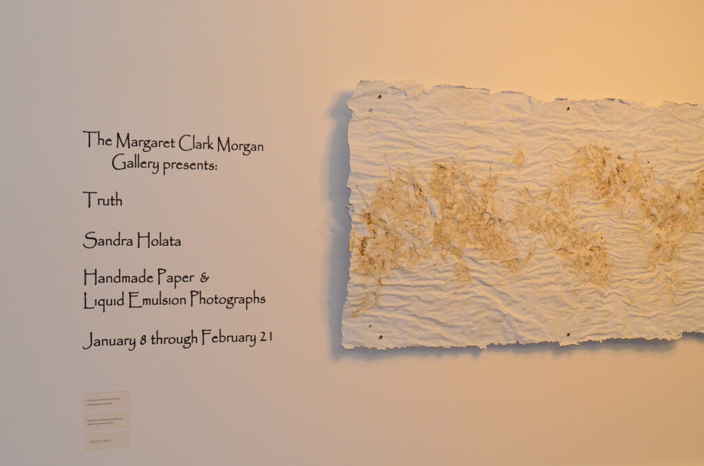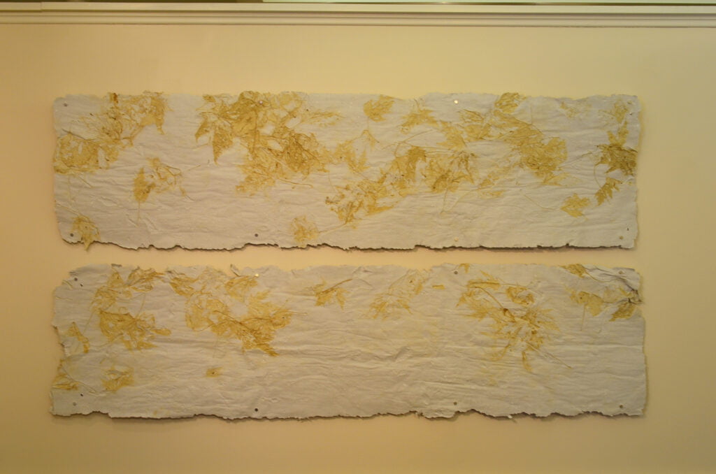 Sandra Holata’s work transmits her reverence for simplicity and nature and includes works using liquid light emulsion photography on recycled paper as well as handmade paper with impressions from nature.