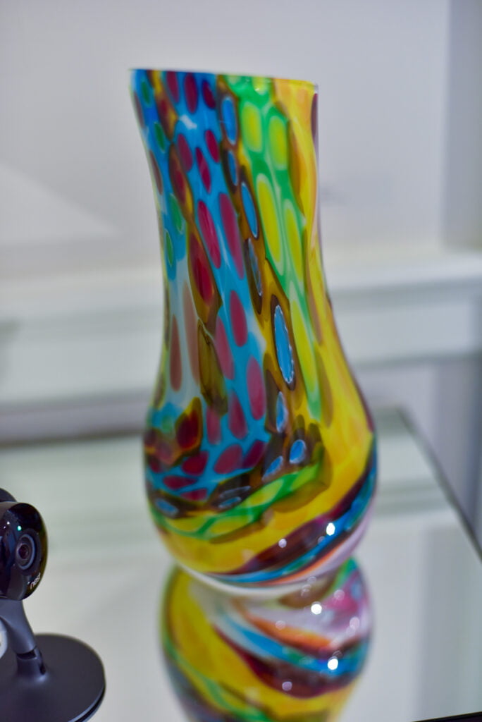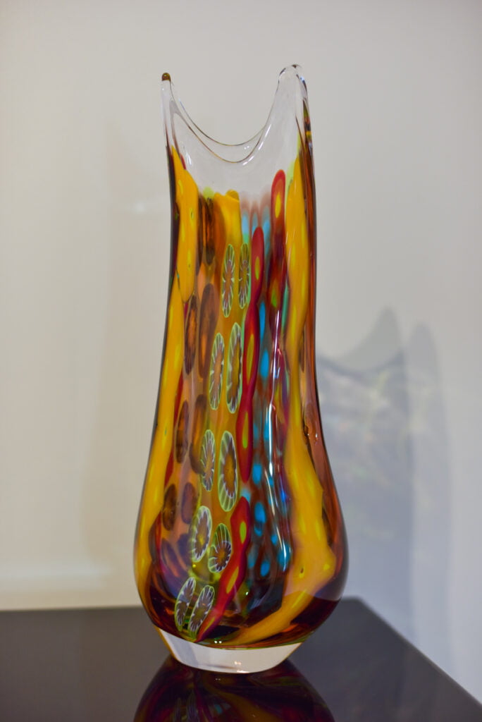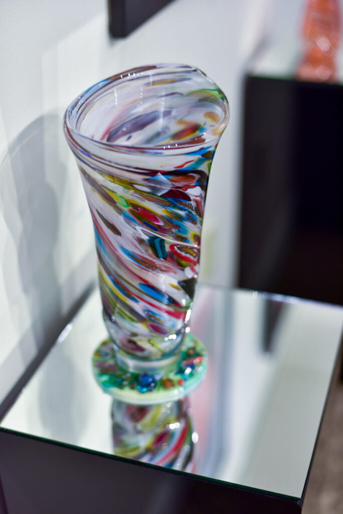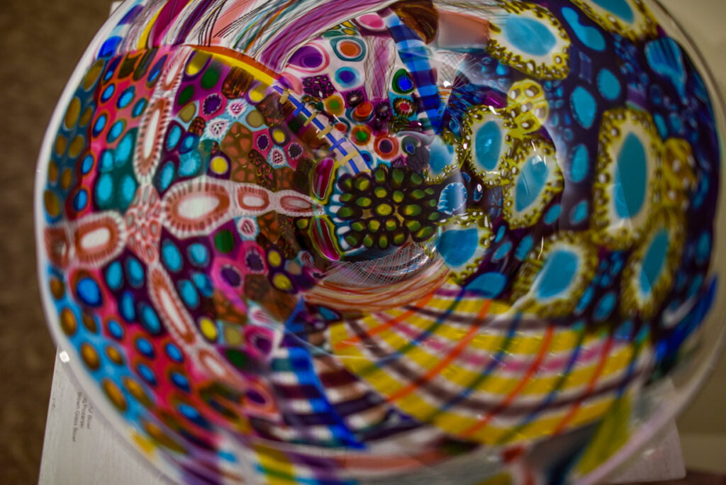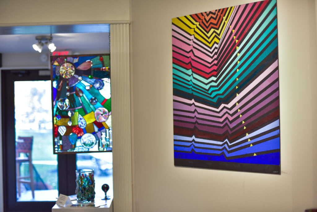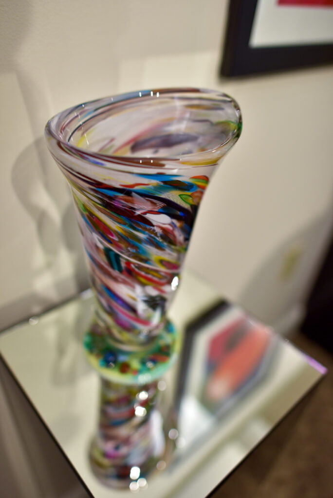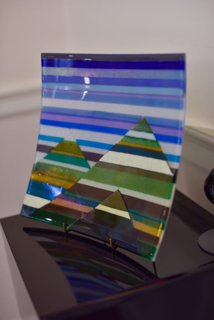 Bob Pozarski is a glass artist inspired by sunlight which has all colors of the rainbow and fills him with wonder and happiness . He keeps looking up, seeking out sunrises, eclipses, rainbows, and galaxies. Pozarski broke glass, played with fire, and made colorful items since the age of four. He is a glass-blowing instructor at the Peninsula Art Academy and is thrilled to have a career making thick, colorful glass by kiln, casting and blowing glass, and grinding it into prism shapes for his stained glass windows. His compositions are simple frameworks that hold a nice piece of glass up to the light. Pozarski has won numerous awards over the last 40+ years for his one-of-a-kind stained glass pieces incorporating kiln formed and blown glass.