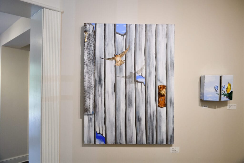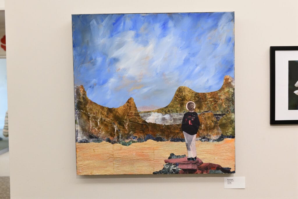 Karen Koch relies on her love of nature and memories of days gone by for inspiration for her art. Her art often explores the idea that being grounded in our past provides a foundation as we grow toward our future. She works mostly in collage, because of the hands-on joy in the process, and for the ability to include repurposed and meaningful materials.